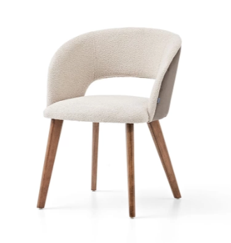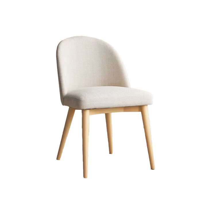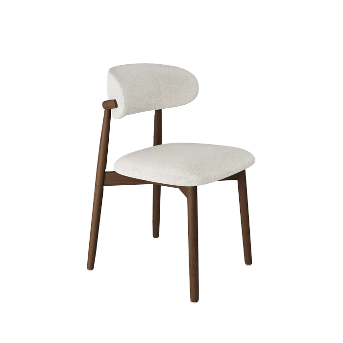 Diseño nórdico contemporáneo con respaldo curvo y base de madera maciza.
