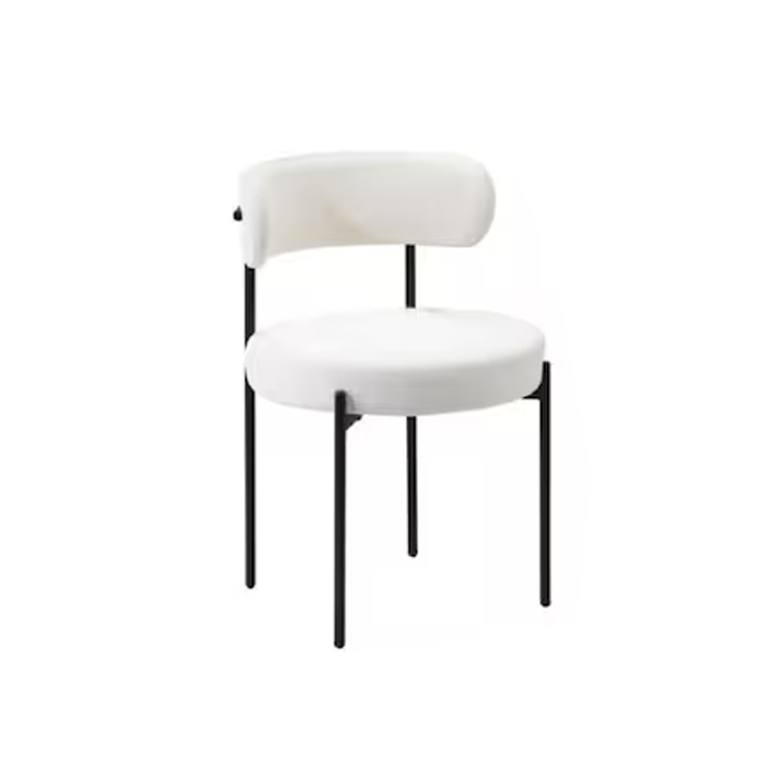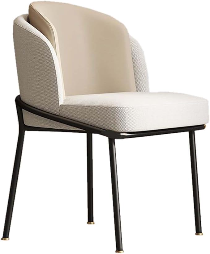 Silla tapizada con estructura metálica negra y respaldo envolvente en tono marfil. Elegancia moderna con confort.