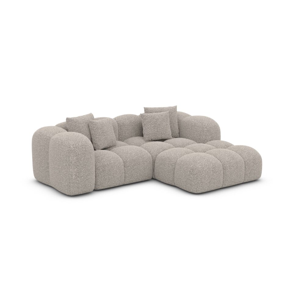 Un sofá en L con chaise longue que combina comodidad suprema y diseño contemporáneo, ideal para crear un rincón de calma sofisticada.